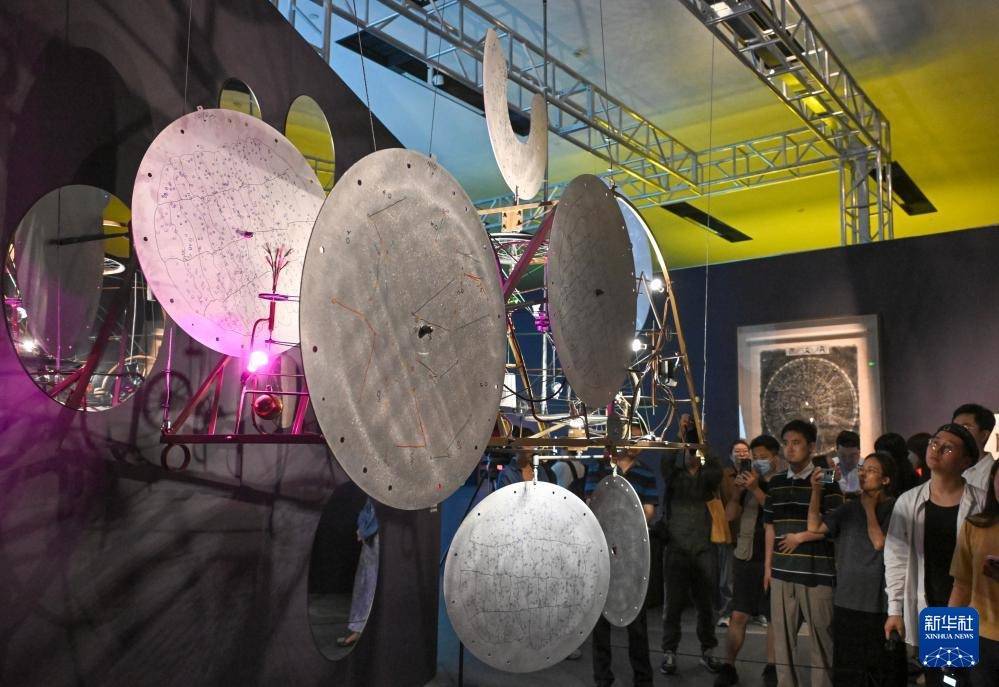 7月2日,观众参观宇宙碰撞交互装置作品。